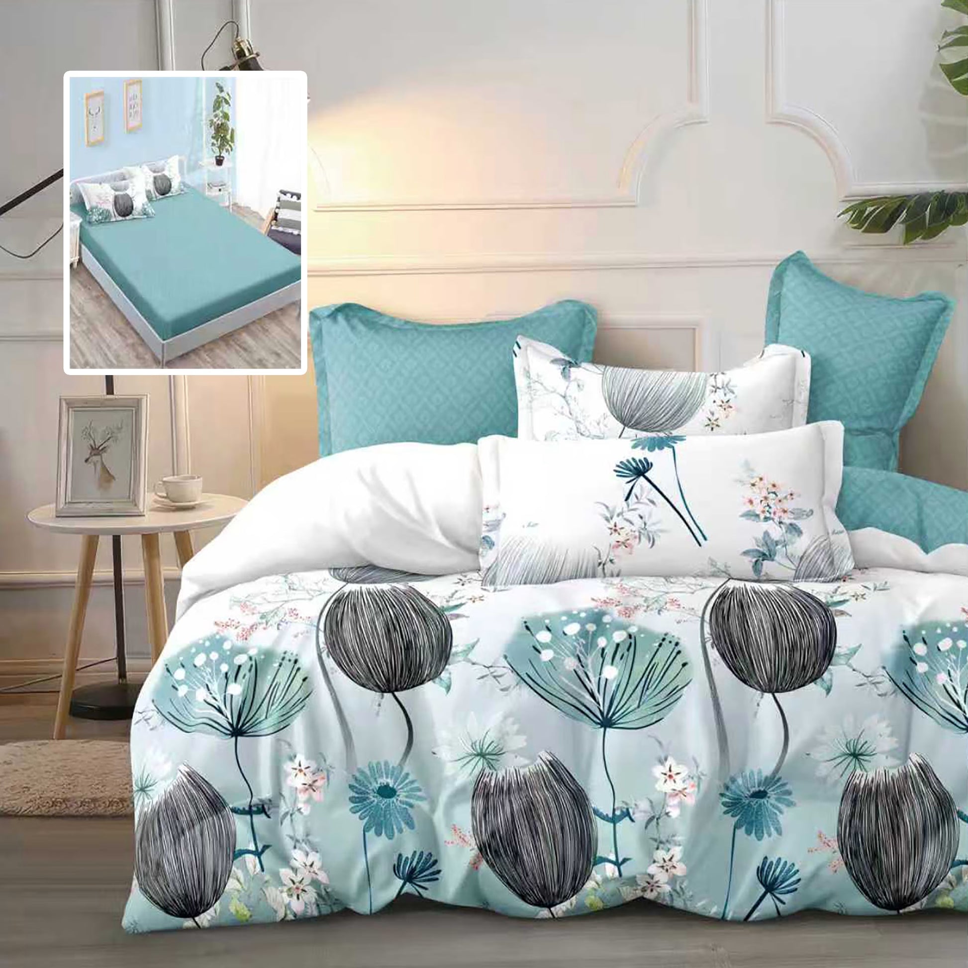 Дизайнът на калъфките за възглавници може да варира. Поради начина на изрязване, щампата върху тях може да бъде произволна част от основния десен на чаршафа, което означава, че не винаги съвпада с представената снимка.