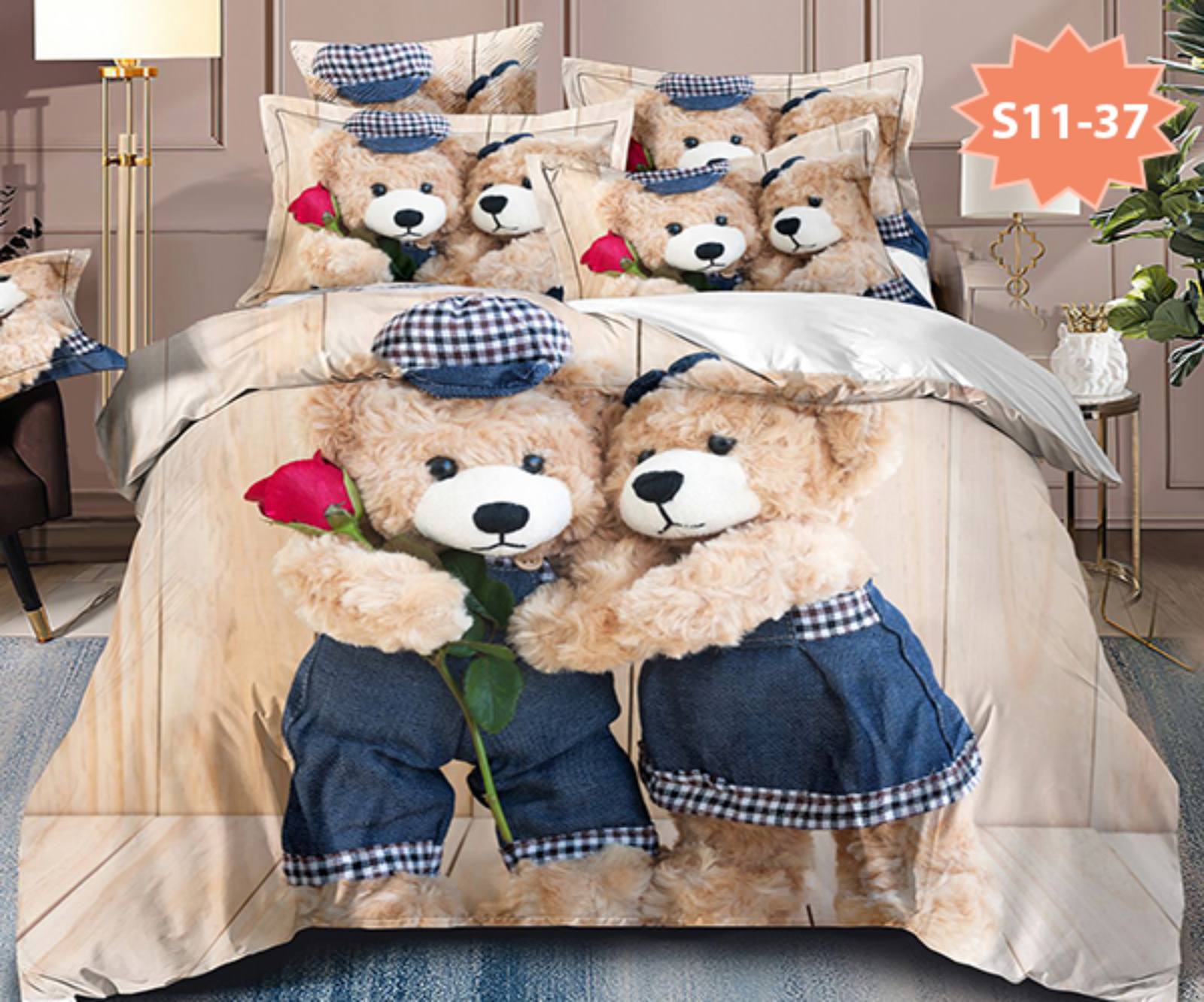 Дизайнът на калъфките за възглавници може да варира. Поради начина на изрязване, щампата върху тях може да бъде произволна част от основния десен на чаршафа, което означава, че не винаги съвпада с представената снимка.